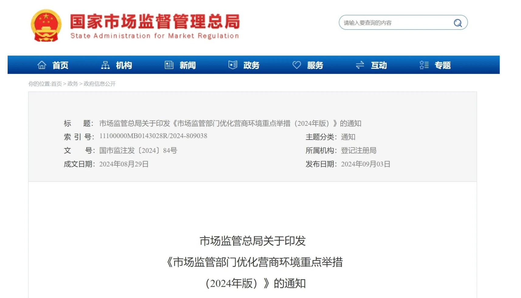9月3日,市場(chǎng)監(jiān)管總局出臺(tái)了《市場(chǎng)監(jiān)管部門(mén)優(yōu)化營(yíng)商環(huán)境重點(diǎn)舉措(2024年版)》?! 〖訌?qiáng)部門(mén)協(xié)同配合,持續(xù)推動(dòng)電子營(yíng)業(yè)執(zhí)照跨區(qū)域、跨部門(mén)、跨行業(yè)互通共享應(yīng)用,拓展電子營(yíng)...