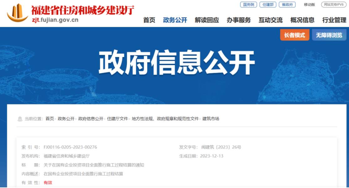 關(guān)于在國有企業(yè)投資項(xiàng)目全面推行施工過程結(jié)算的通知 閩建筑〔2023〕26號 各設(shè)區(qū)市建設(shè)局、國資委,平潭綜合實(shí)驗(yàn)區(qū)交建局、國資局: 為貫徹落實(shí)《國務(wù)院辦公廳關(guān)于全面...