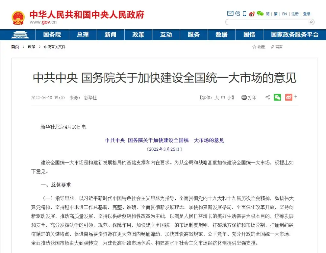 消息來(lái)源:新華社《中共中央 國(guó)務(wù)院關(guān)于加快建設(shè)全國(guó)統(tǒng)一大市場(chǎng)的意見(jiàn)》發(fā)布