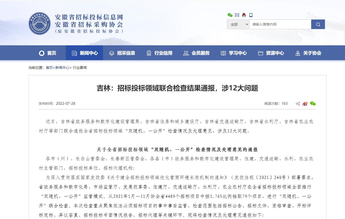 吉林|通報招標(biāo)投標(biāo)領(lǐng)域聯(lián)合檢查結(jié)果...